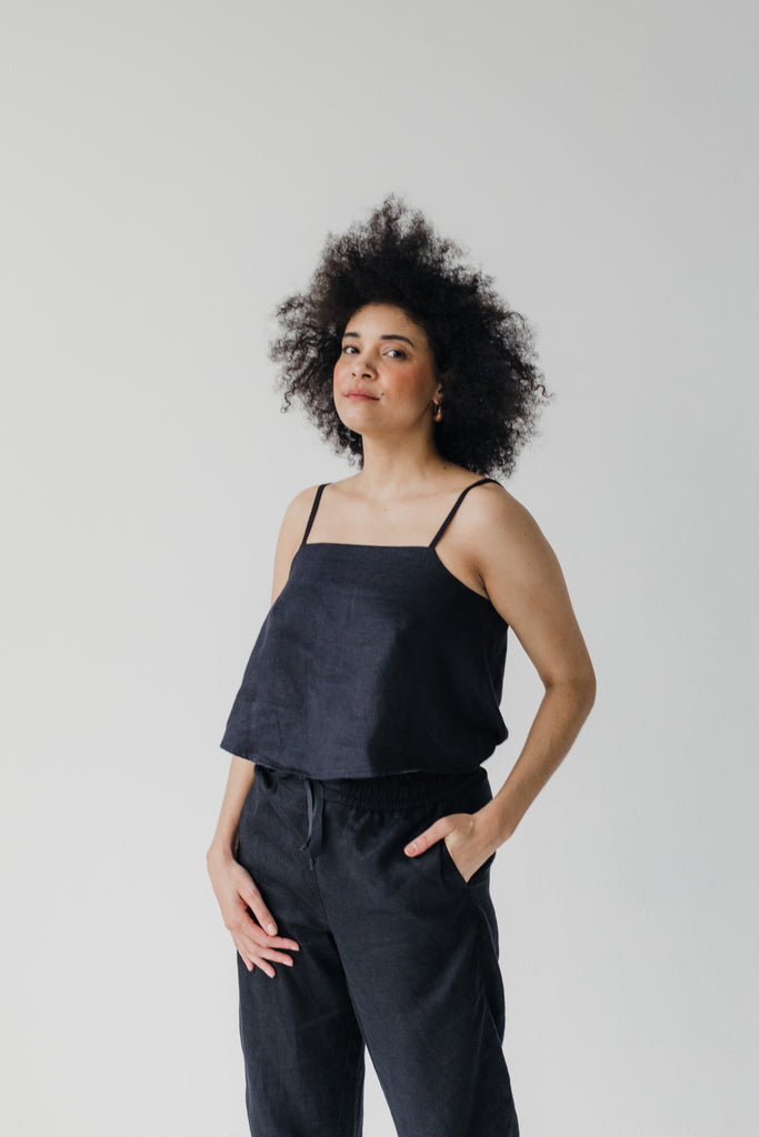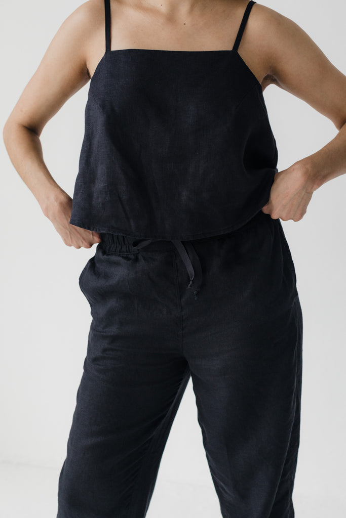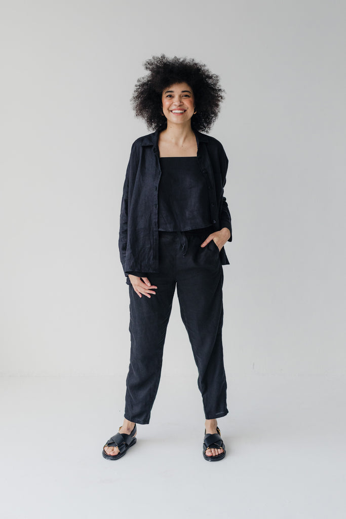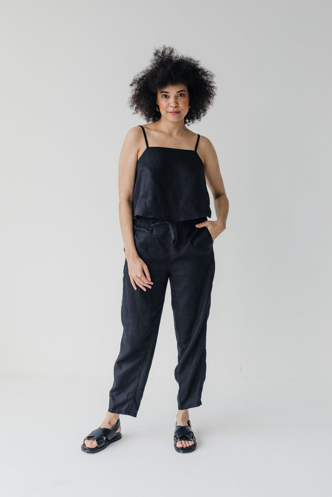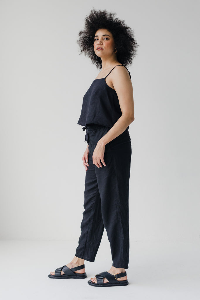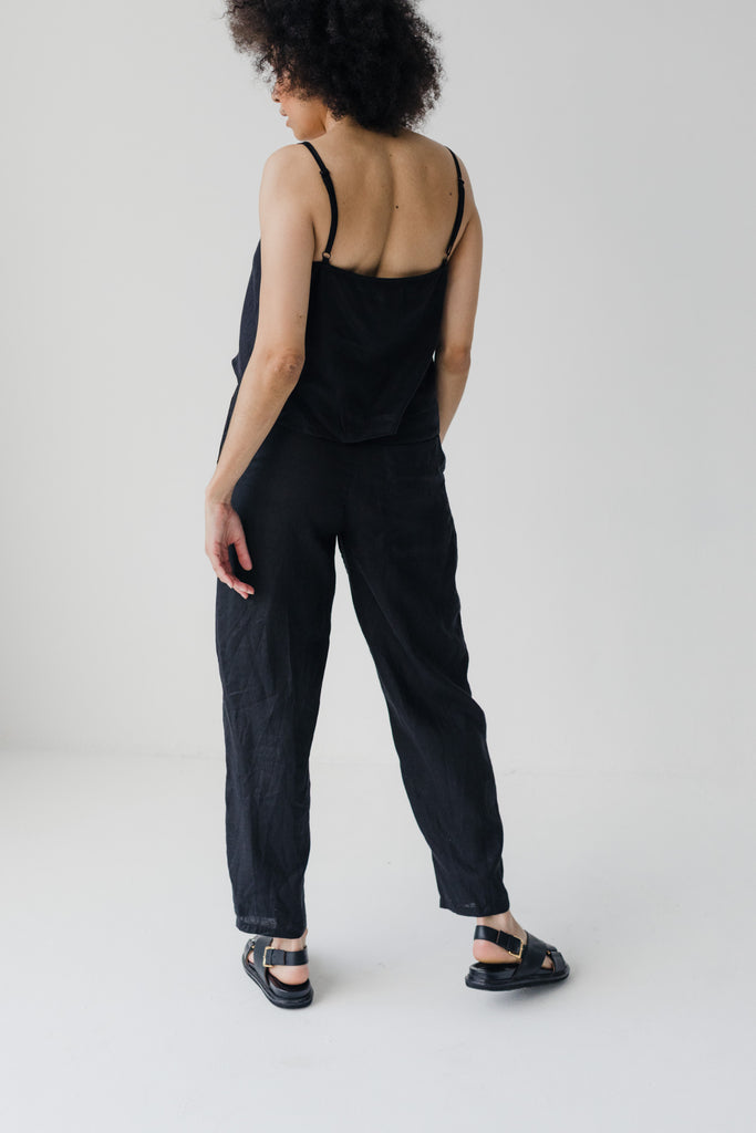 Janni & GeorgeRelaxed, tie-adjustable trousers made from 100% linen. These trousers have a slouchy fit on the leg and pair perfectly with our Cami Top or Linen Shirt.