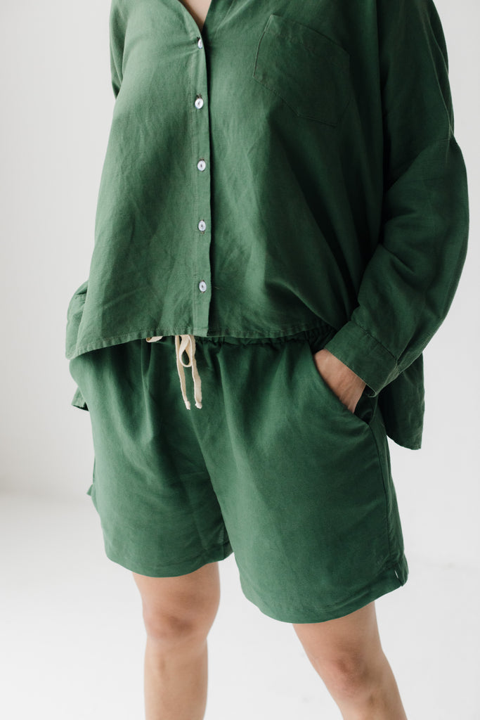 Relaxed, tie-adjustable shorts made from 100% linen. They are extremely comfortable and the only shorts you will need in Summer.