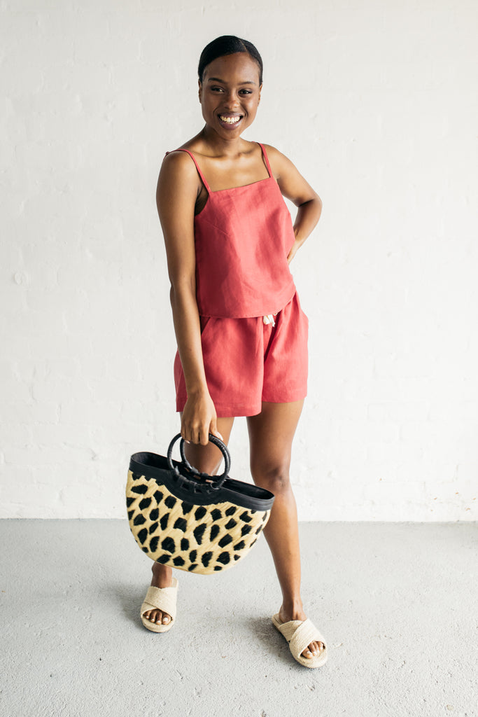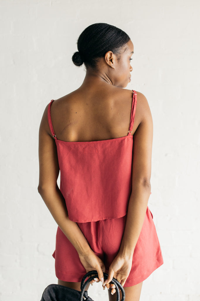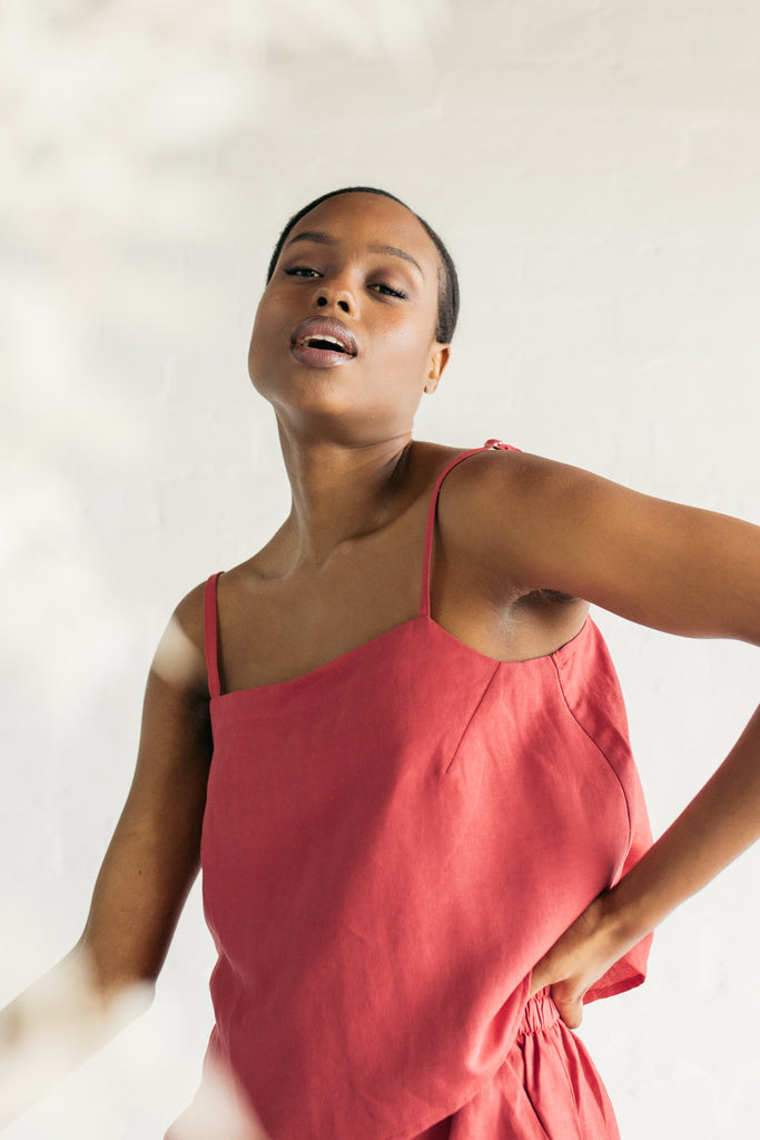 Janni & GeorgeOur Cami Top is the easiest staple to slot into your wardrobe. It features a dart on the chest and adjustable straps, allowing you to find the perfect fit. Pair with our Linen Tie Shorts to create the perfect Summer set.