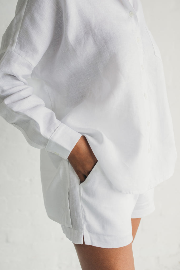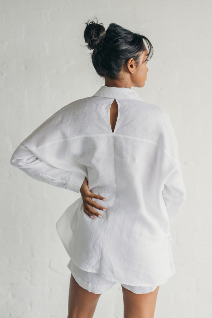 Janni & GeorgeRelaxed fit button-up linen shirt with a dropped shoulder and a high low hem. This item is a generous fit, so opt for your normal size if you prefer a looser fit, or a size down for a smaller fit.