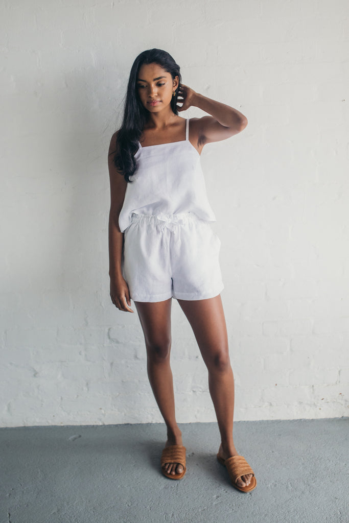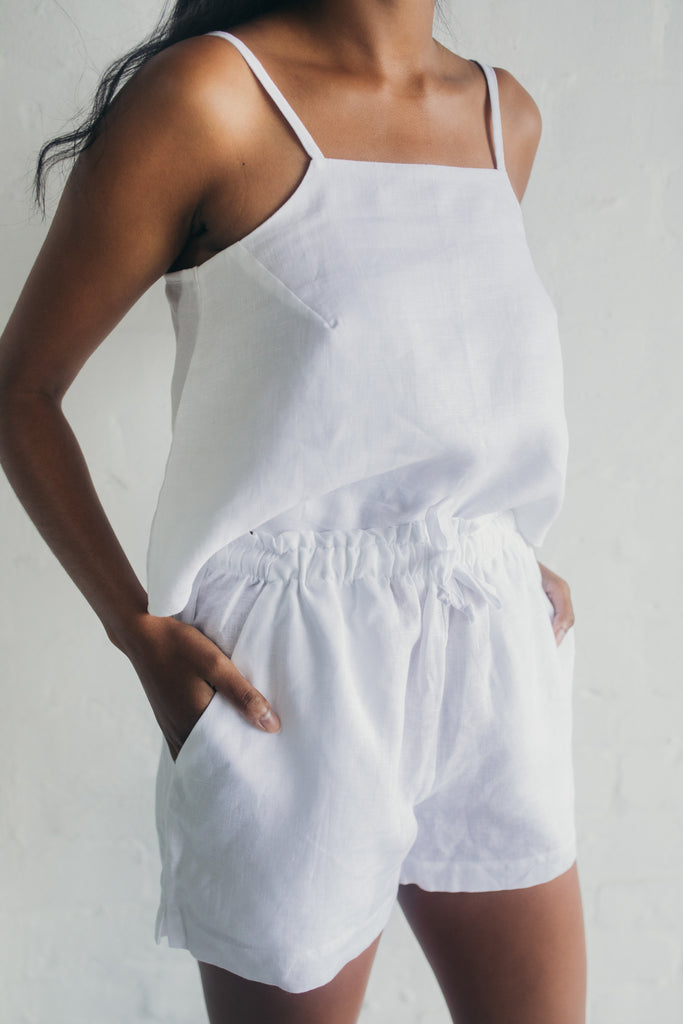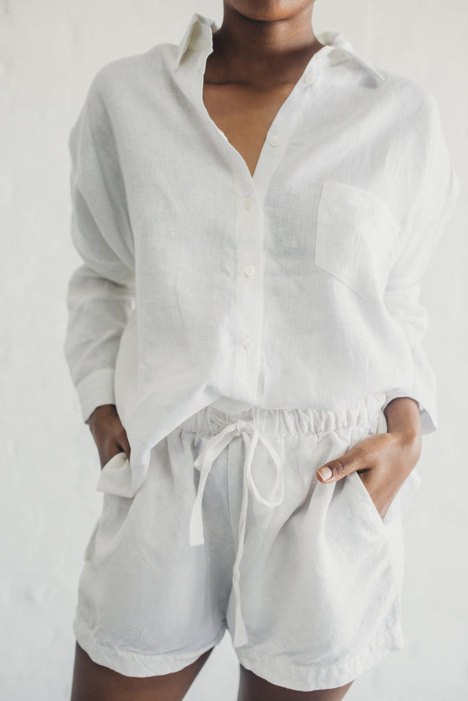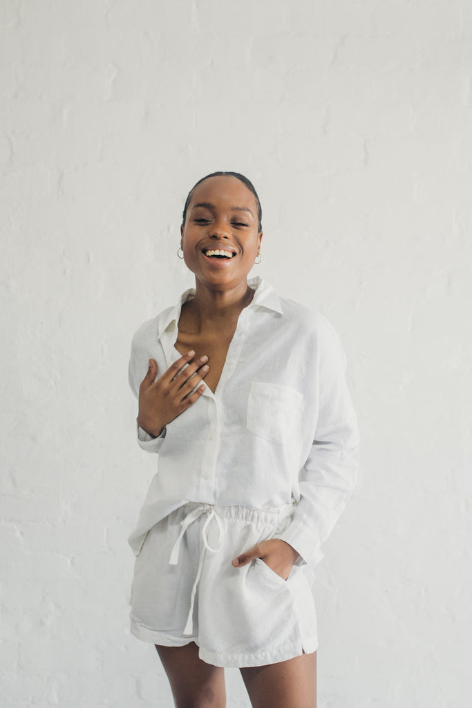 Please note: Some of the 100% white linen garments are slightly sheer. We recommend wearing over a bikini or with flesh-coloured underwear.