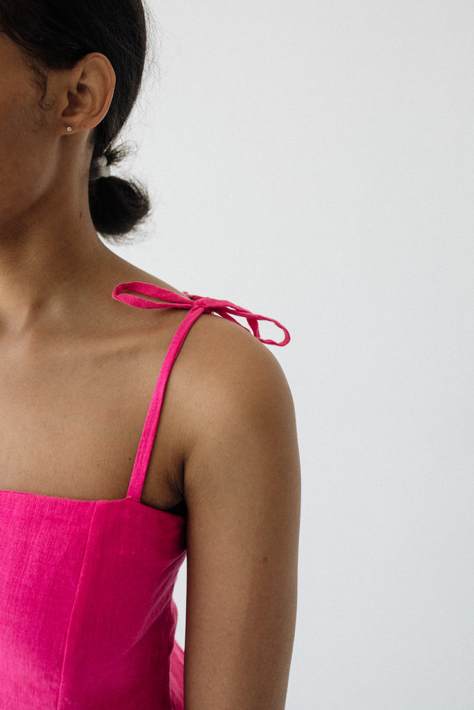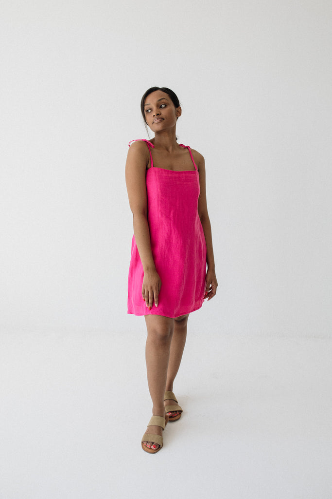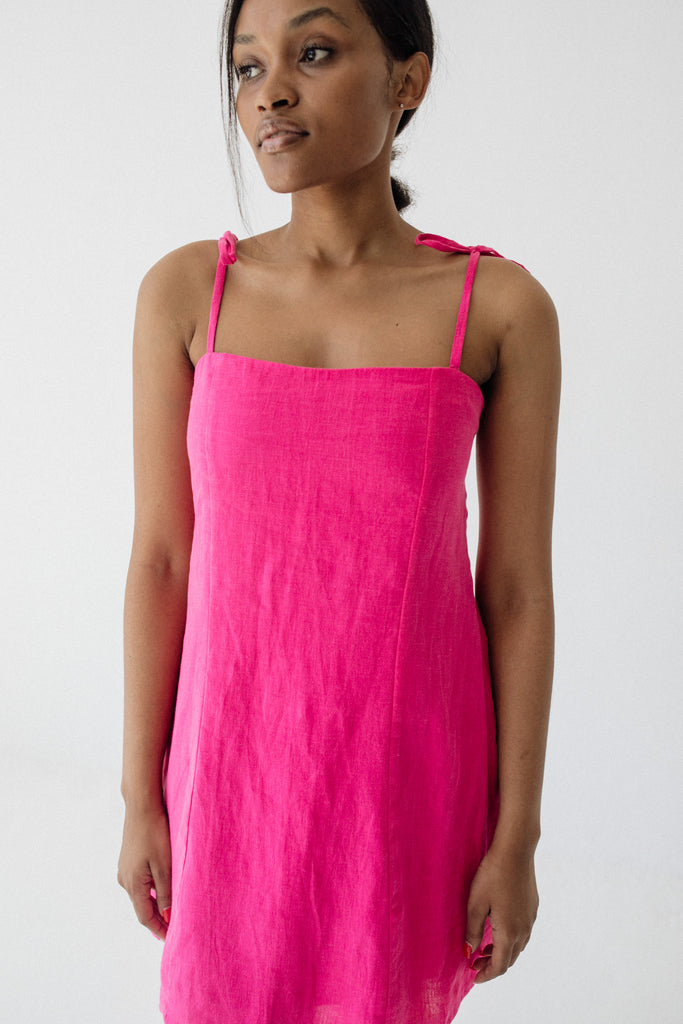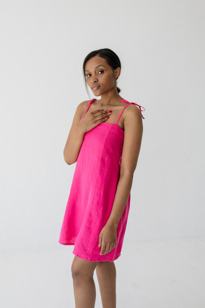 Janni & GeorgeAnother perfect mini dress for those balmy summer evenings. Adjustable tie straps, as well as an elasticated back, allow for a flexible fit.