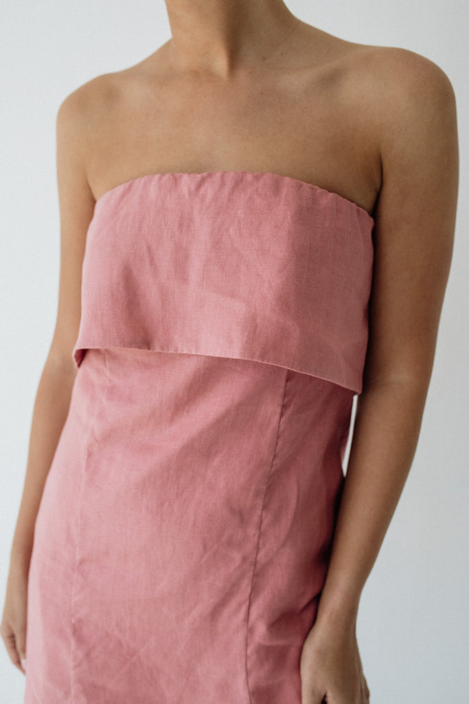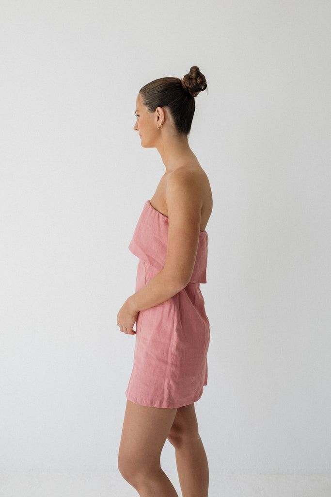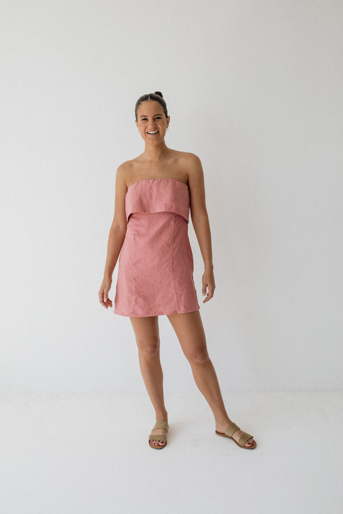Janni & GeorgeThe perfect strapless mini dress for those balmy summer evenings. An elasticated seam around the bust, as well as a back zip allow for a flexible fit.