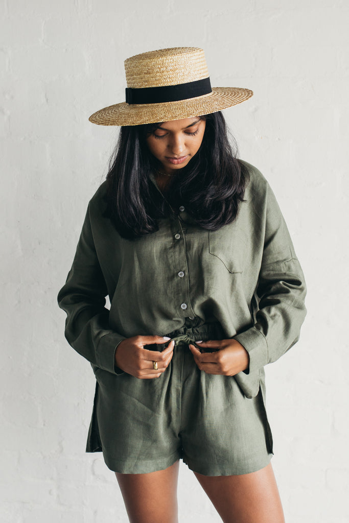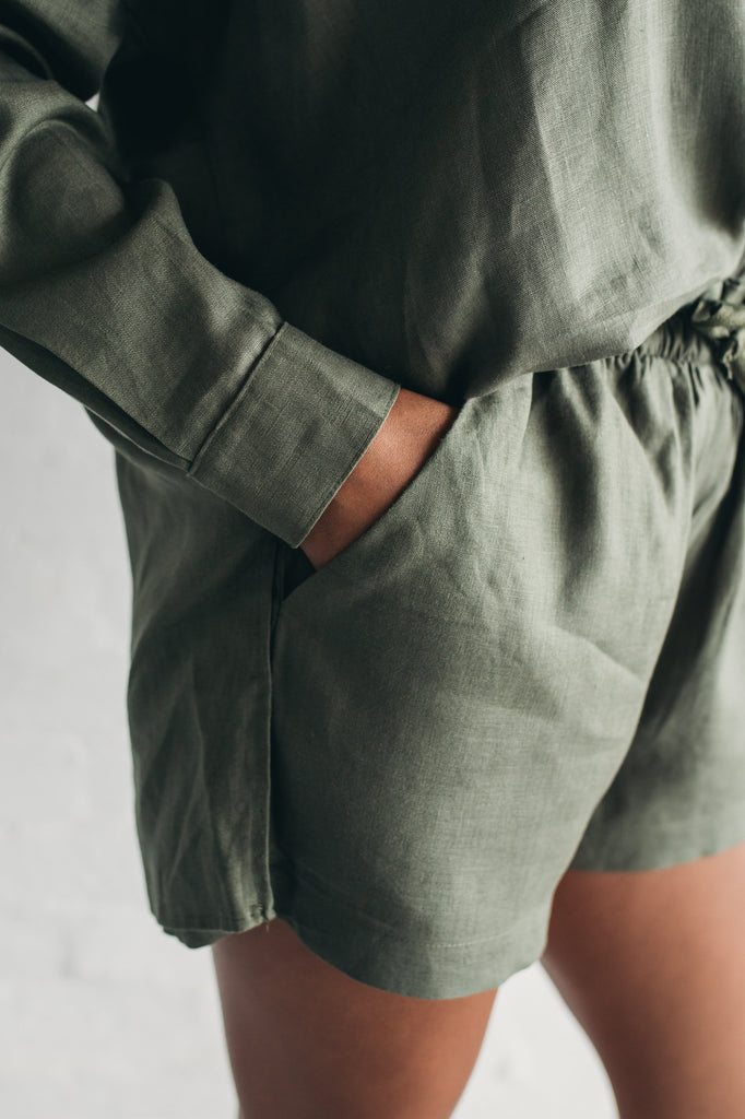Janni & GeorgeRelaxed, tie-adjustable shorts made from 100% linen. They are extremely comfortable and the only shorts you will need in Summer.