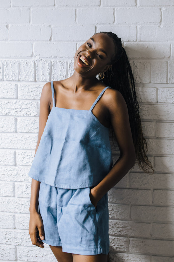 Janni & GeorgeOur Cami Top is the easiest staple to slot into your wardrobe. It features a dart on the chest and adjustable straps, allowing you to find the perfect fit. Pair with our Linen Tie Shorts to create the perfect Summer set.