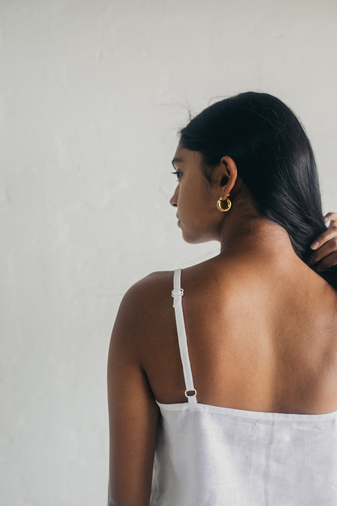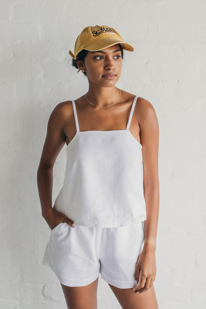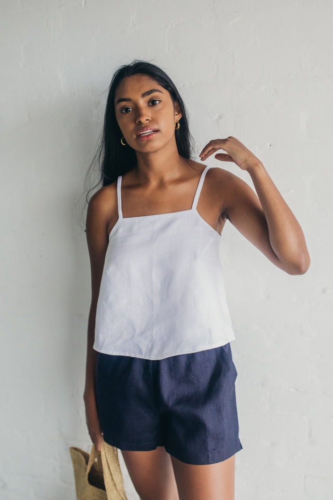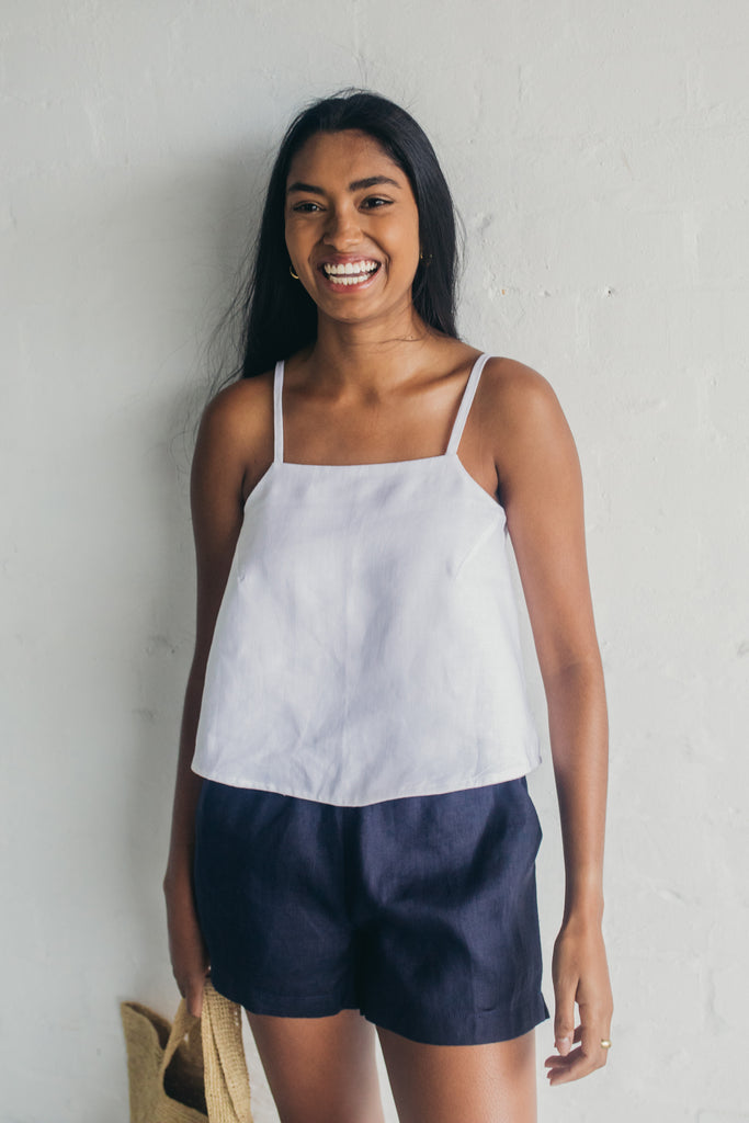 Janni & GeorgeOur Cami Top is the easiest staple to slot into your wardrobe. It features a dart on the chest and adjustable straps, allowing you to find the perfect fit. Pair with our Linen Tie Shorts to create the perfect Summer set.